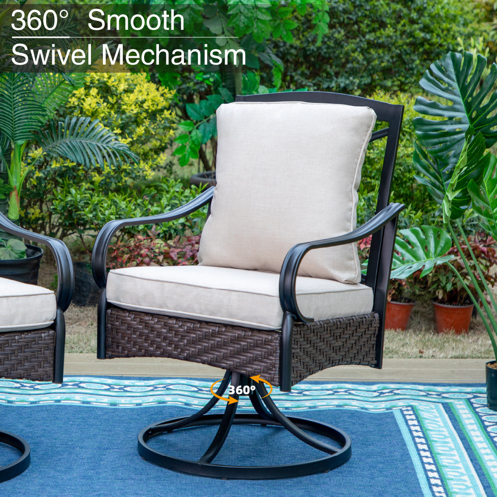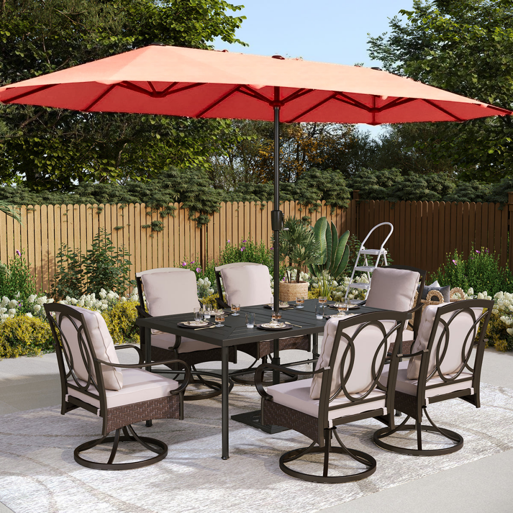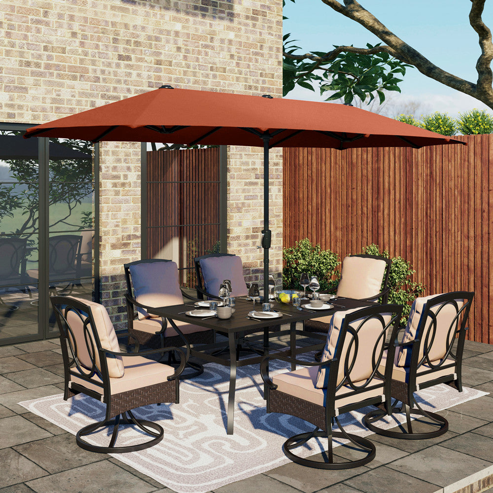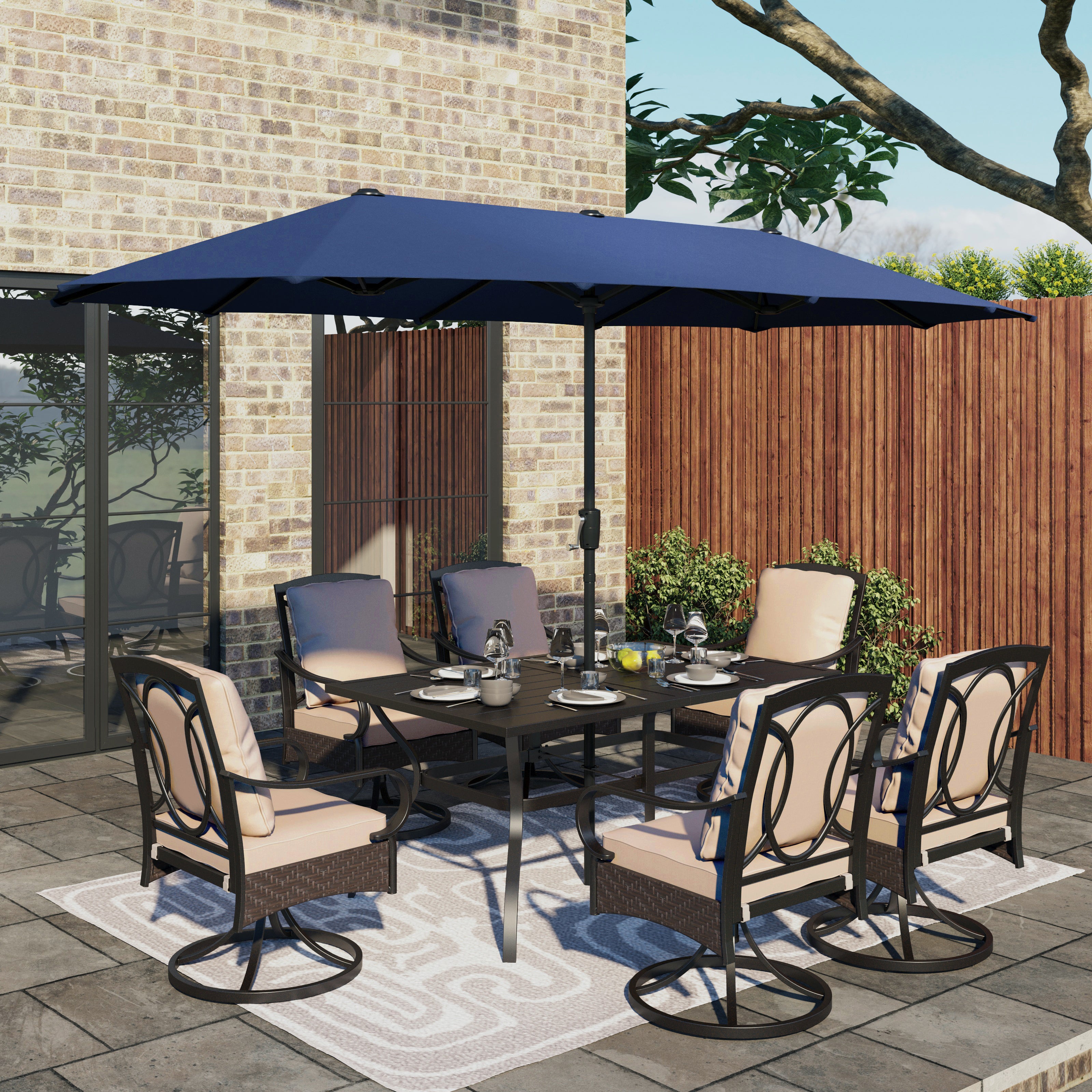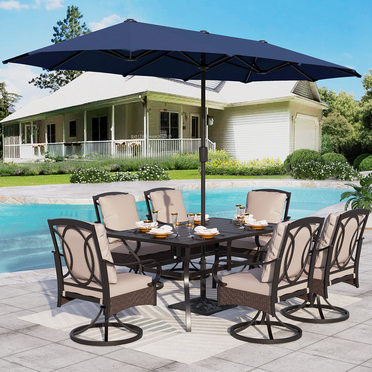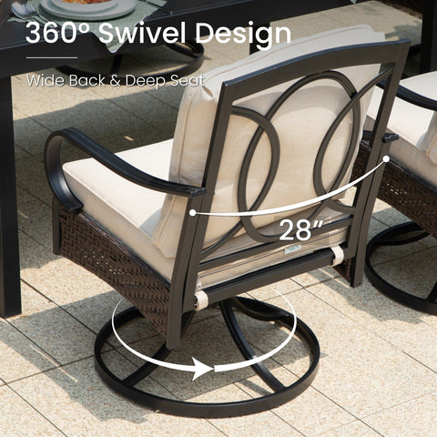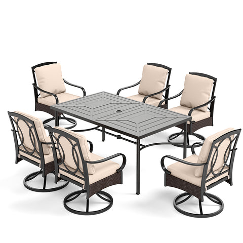 Sophia & William Luxurious Thick-Cushion Rattan-steel Swivel Chairs 7-Pcs Patio Dining Set