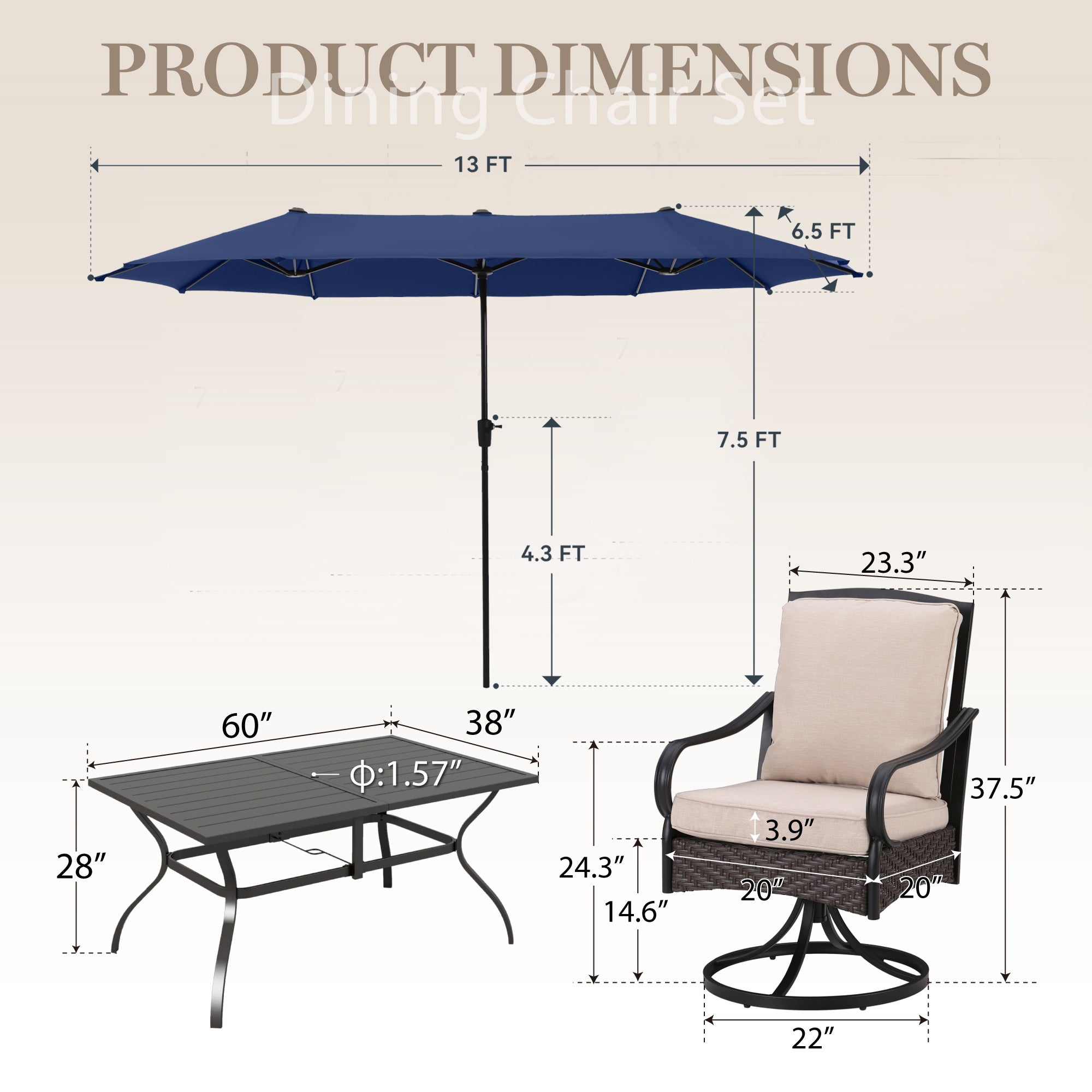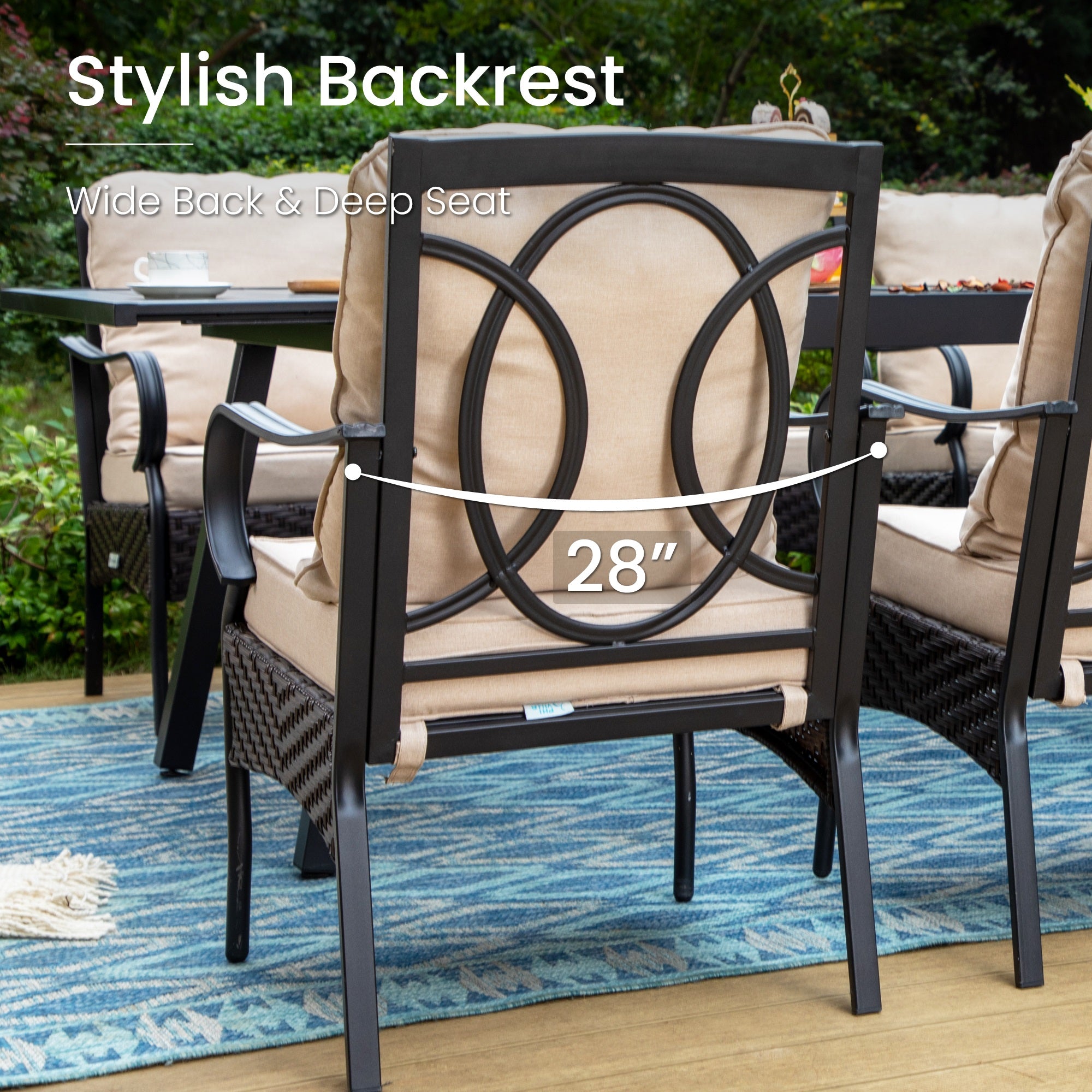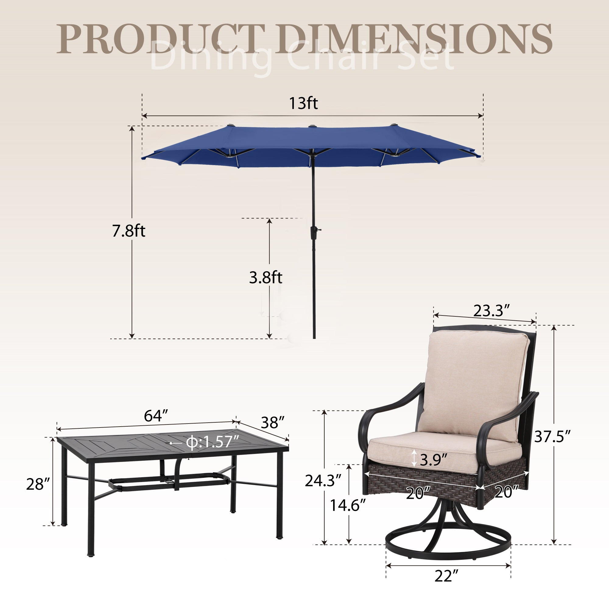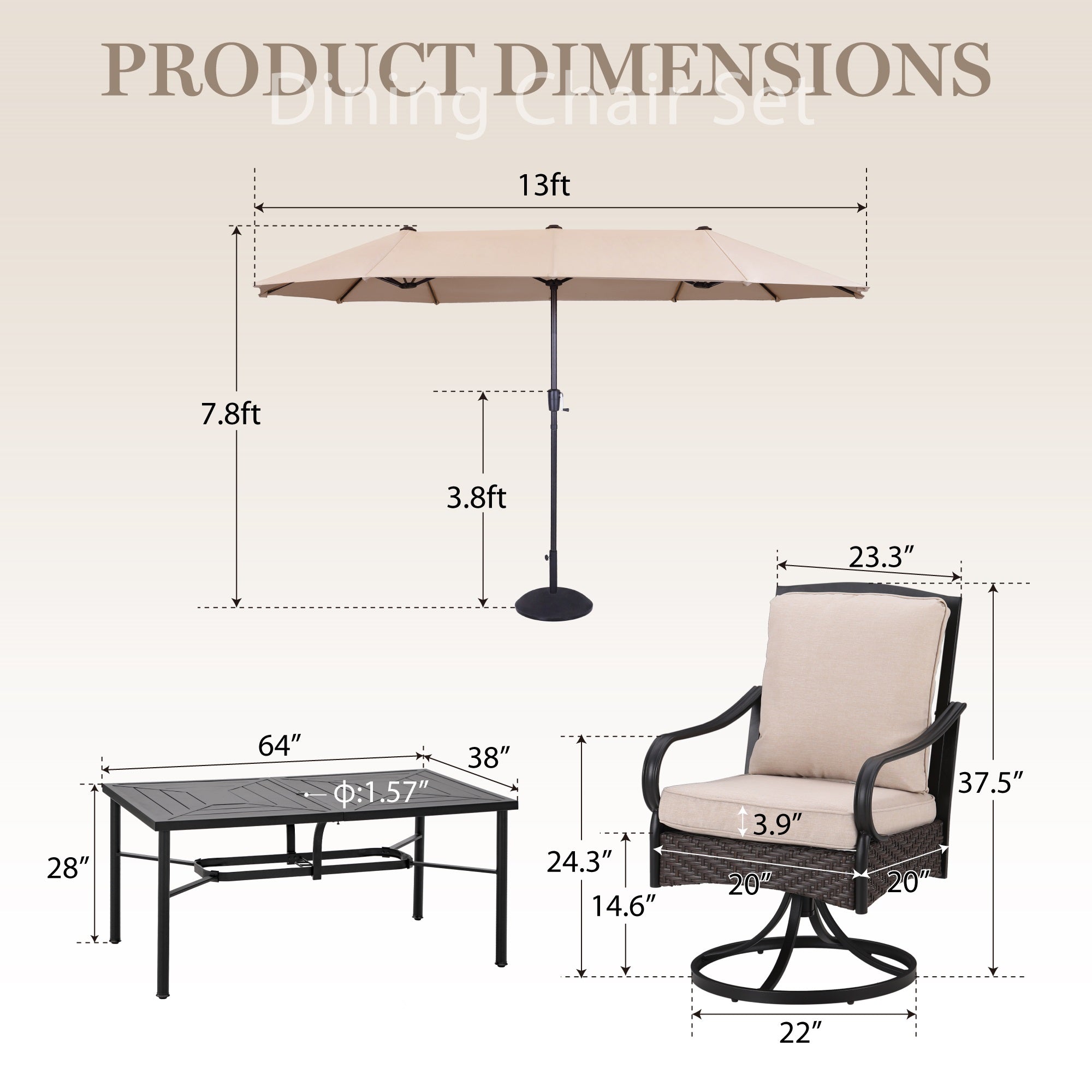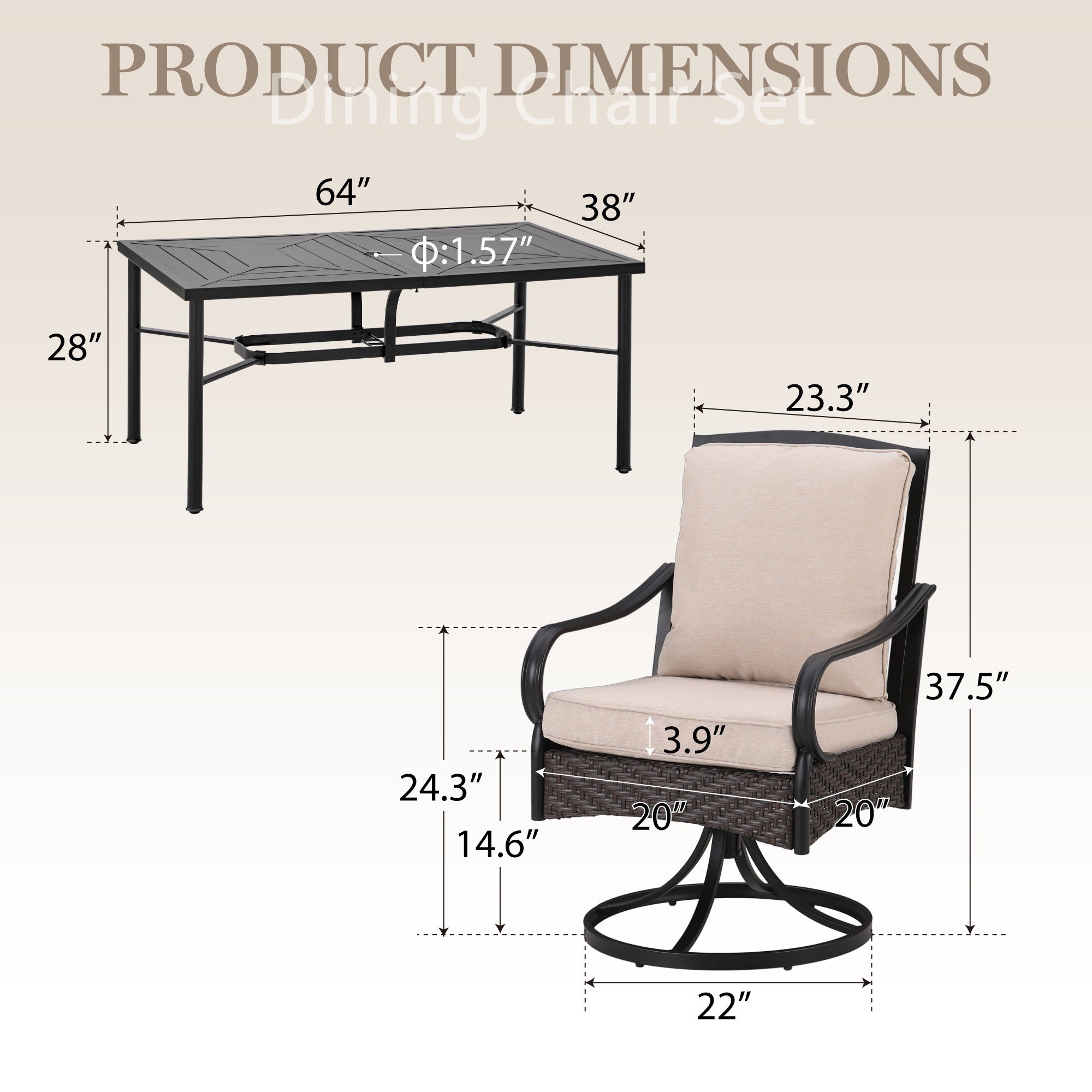 Sophia & William Luxurious Thick-Cushion Rattan-steel Swivel Chairs 7-Pcs Patio Dining Set