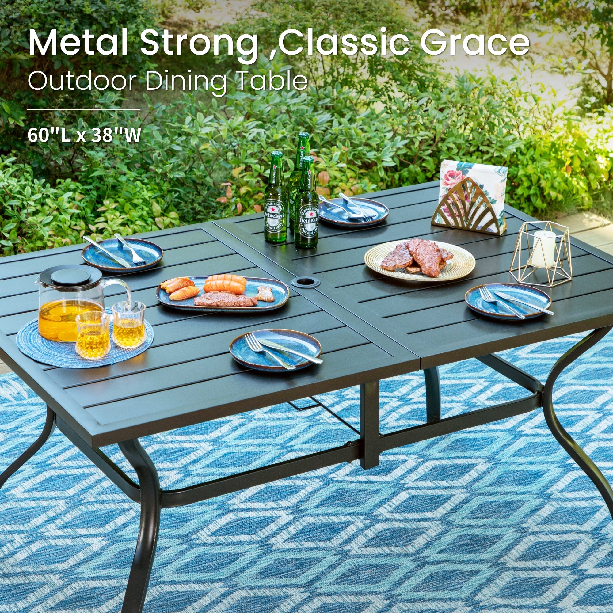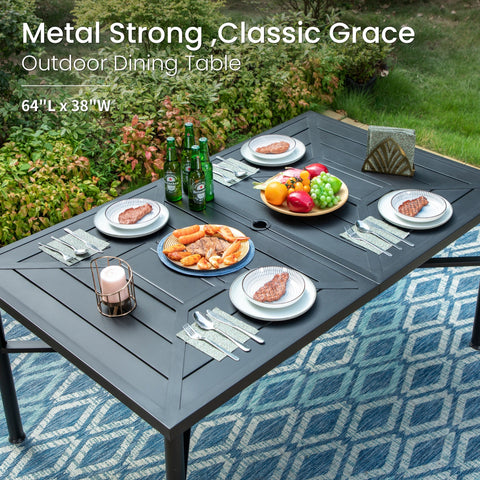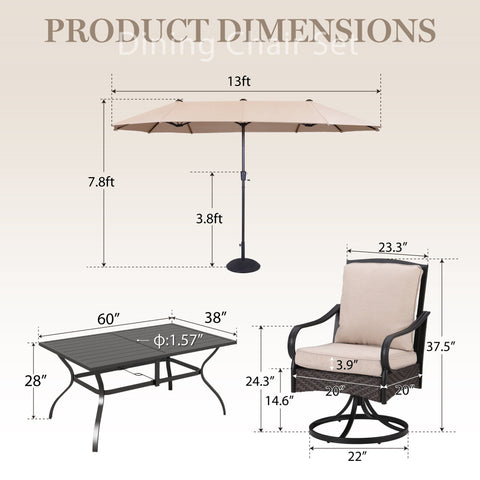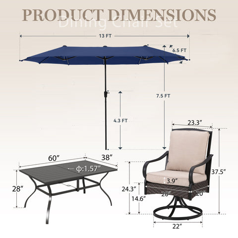 • Horizontal Table: 60.2"L x 37.8"W x 28"H; Diameter of umbrella hole:1.57"