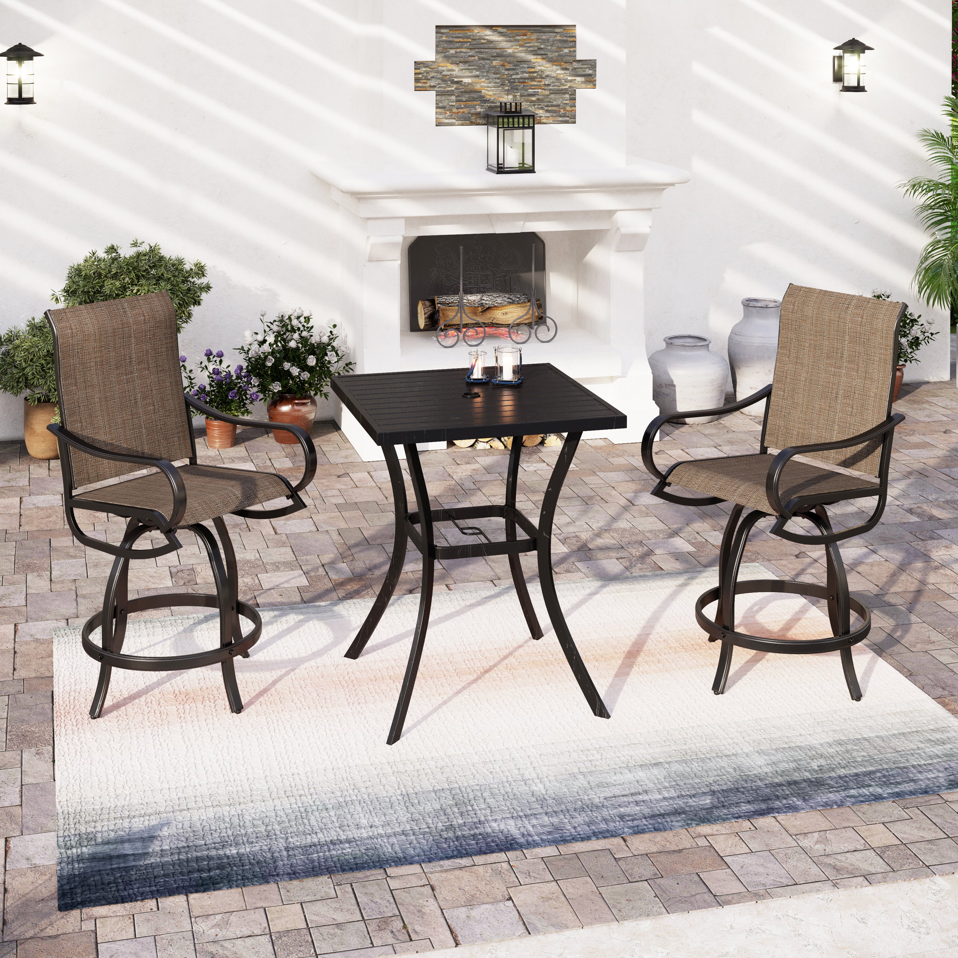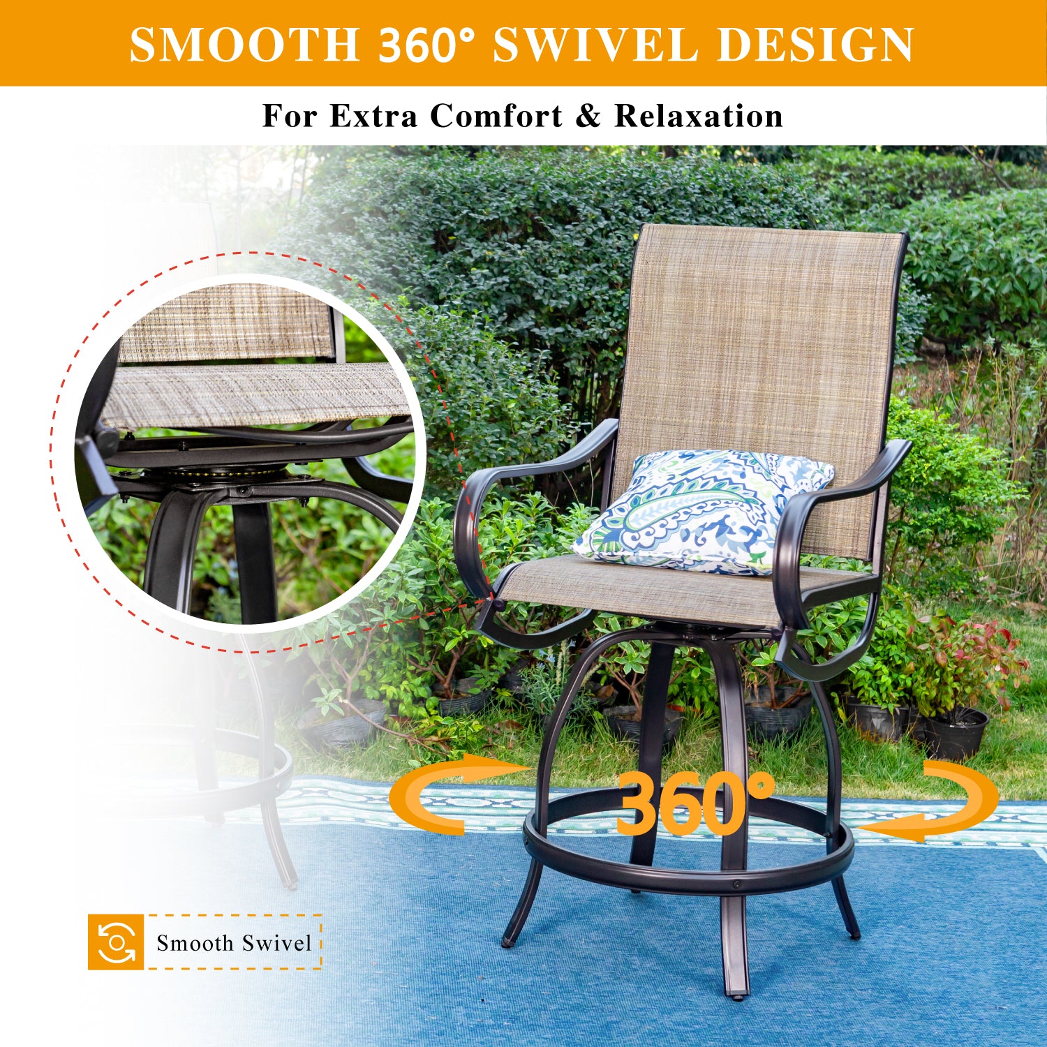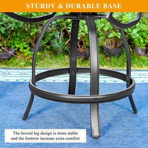 360° Swivel: The 360° swivel function of outdoor swivel bar stools allow you to rotate in any direction. This can help you enjoy the scenery or chat with friends easily. The rotating turntable system under the seat can rotate the seat smoothly without making noise. The footrest design can relax your legs and provide unlimited comfort.