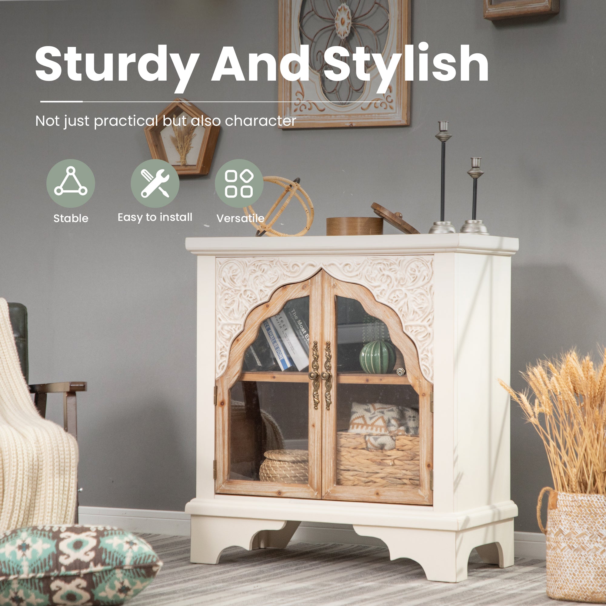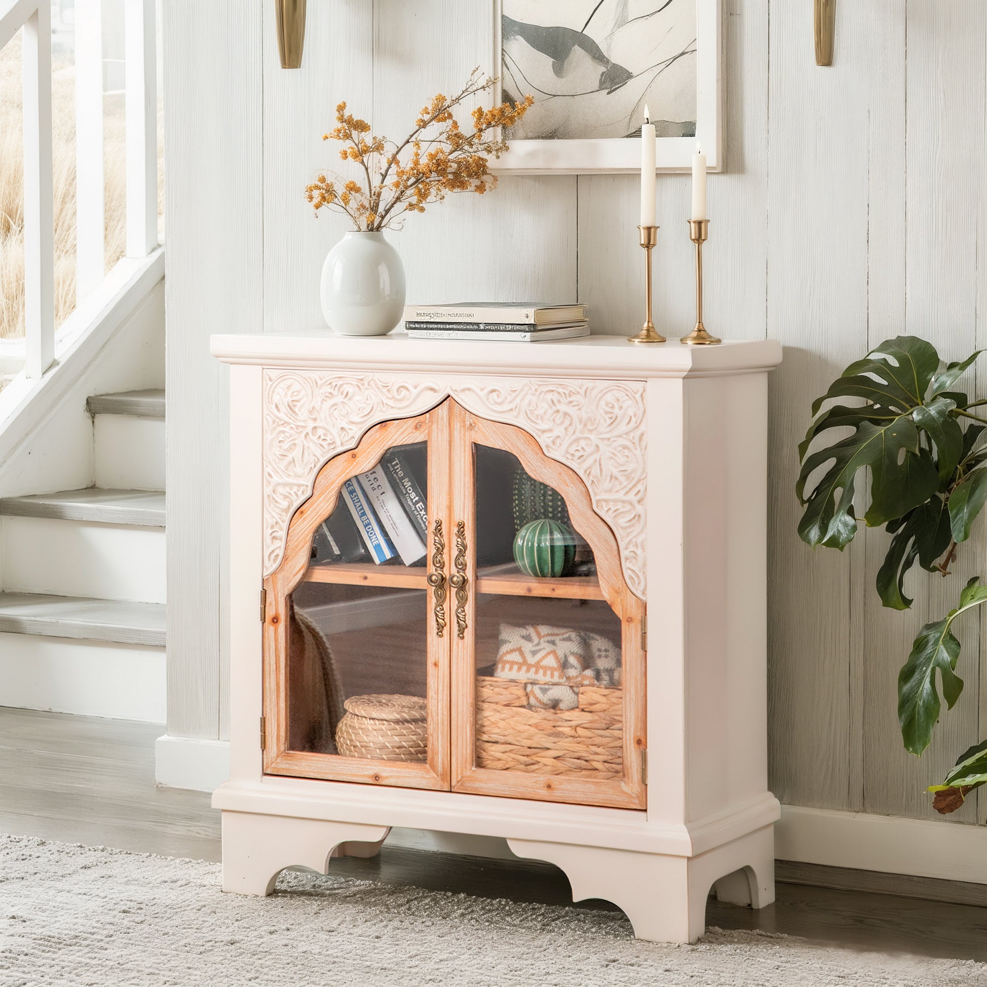 Add a touch of vintage charm to your home with the MFSTUDIO 2-Door Accent Storage Cabinet. Featuring a hollow-carved pattern, mid-century style, and durable solid wood construction, this versatile cabinet is perfect for organizing daily essentials while enhancing your living room, dining room, or entryway. Its spacious shelves and multifunctional design make it both stylish and practical.